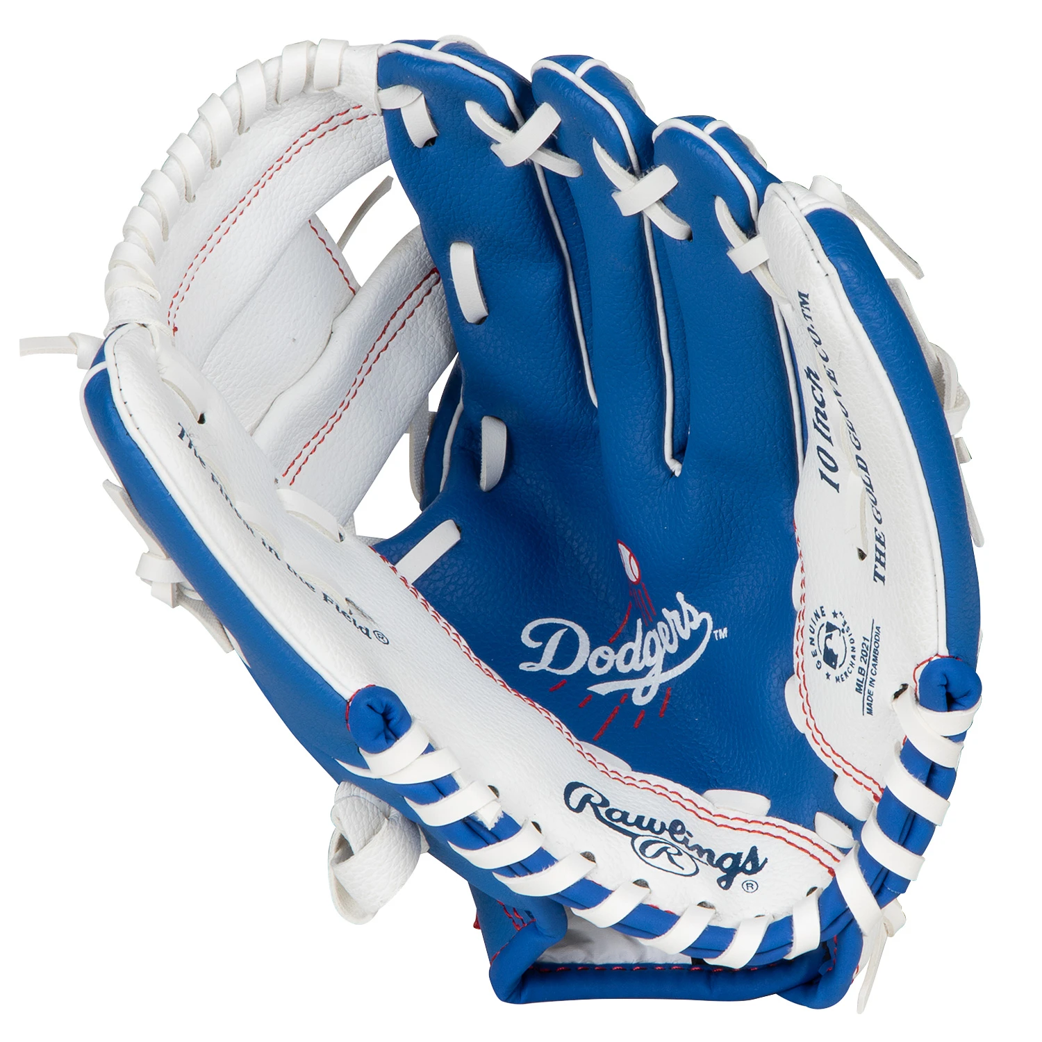 10″ Youth Size Los Angeles Dodgers Team Logo Rawlings Glove. Includes team colors and logos. Show off your support of your favorite team while you use your glove. Fully playable, 3-piece palm construction. Ages 10 & under.