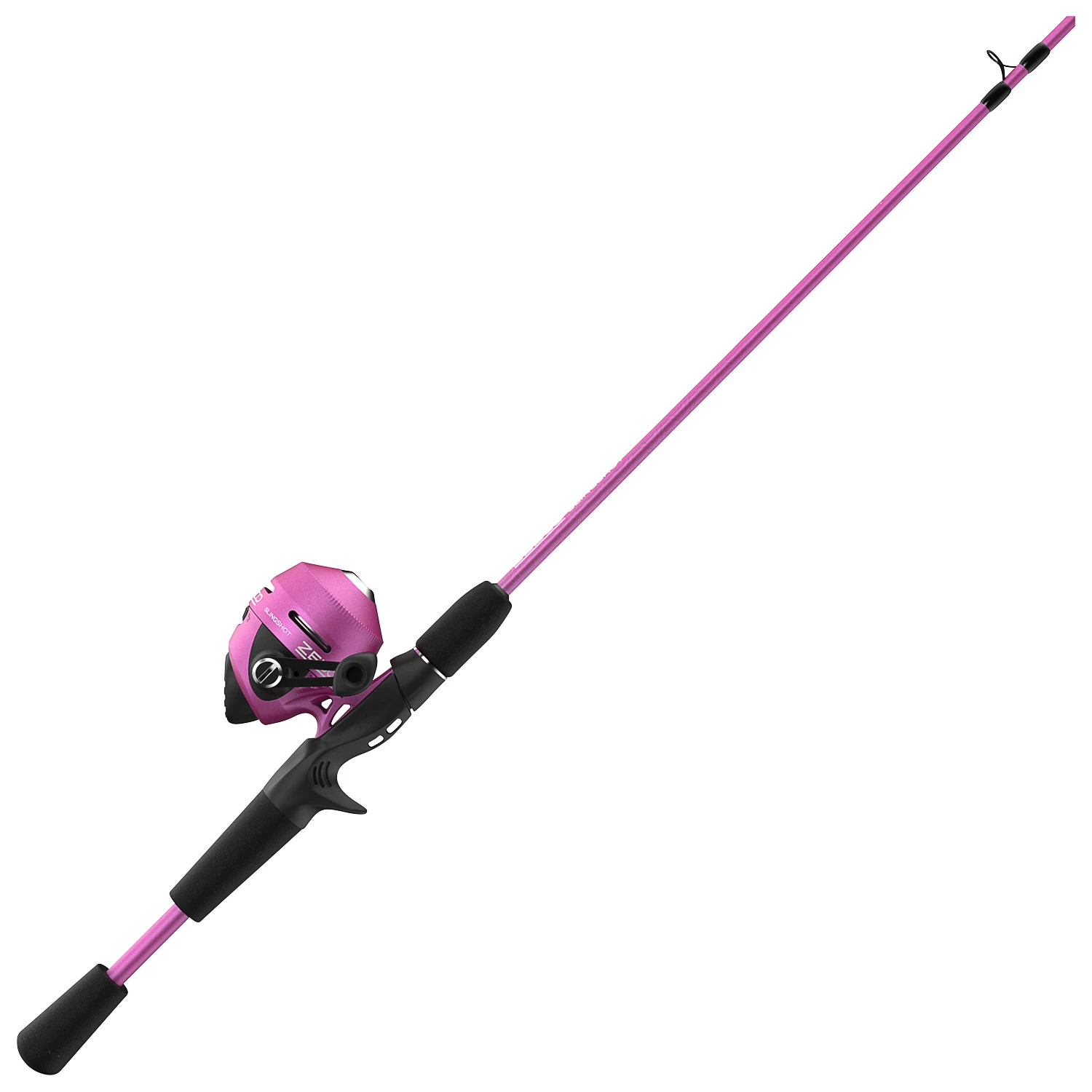 A custom-matched combo great for all ages with line-casting Slingshot Spincast reel and a durable 2-piece Z-Glass Rod.